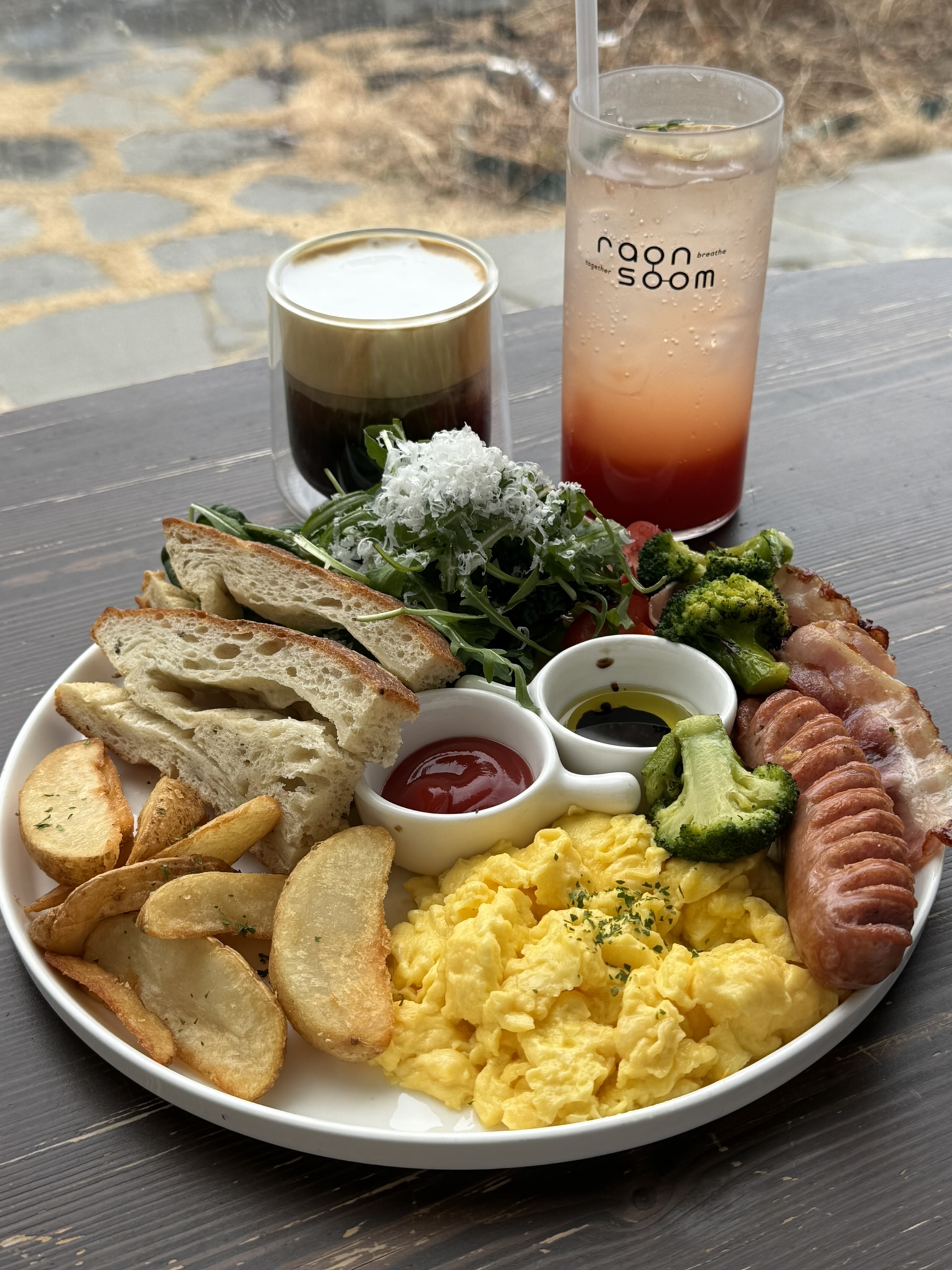 대형카페인데 브런치 퀄리티가 이 정도일 줄은 몰랐어요. 플레이팅부터 정성스럽고 예쁘게 나왔어요.