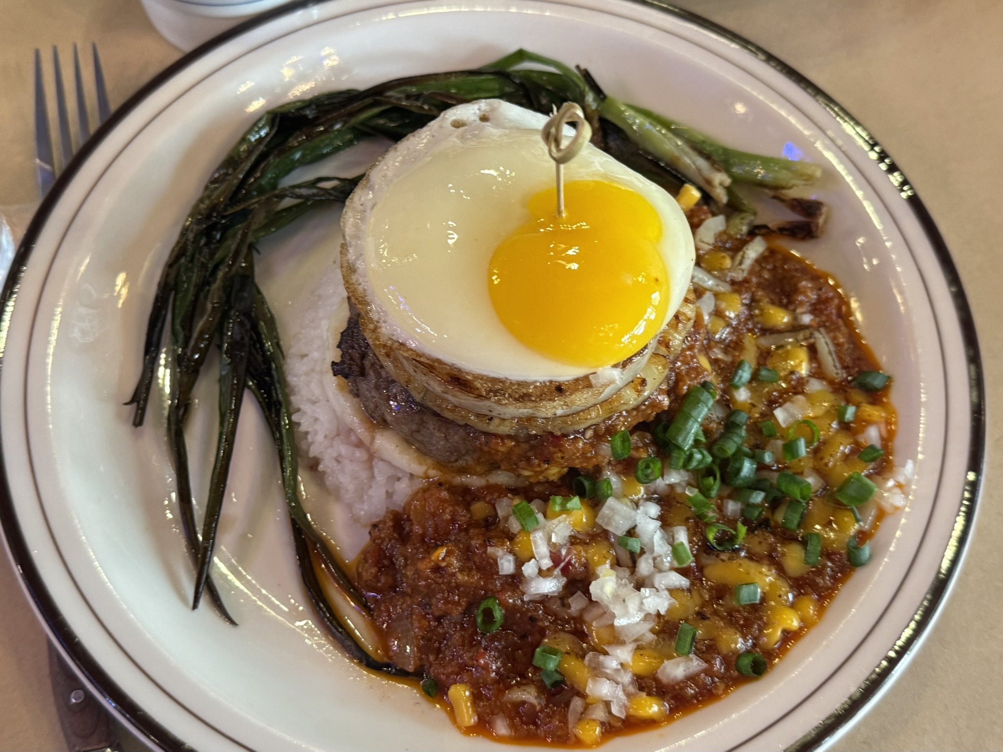 슬로피조 햄버그는 소스가 듬뿍 올라간 스타일인데, 일반적인 햄버그와는 다르게 살짝 이국적인 느낌이 나면서도 누구나 좋아할 수 있는 맛이었어요. 특히 빵 없이 고기 자체에 집중한 스타일이라 든든하면서도 부담 없이 먹기 좋았어요.