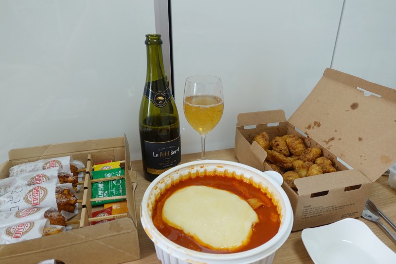 르쁘띠베레 모스카토 스위트 스파클링은 달달한 향으로 디저트, 과일, 식전주로 즐기는 와인이지만 맛이 누구나 무난하게 즐길 수 있는 와인이라 어떤 음식이랑 먹어도 넘 잘어울렸어요. 특히 스파클링과 달달함이 느껴지는 스파클링와인이라 매운 음식이랑도 개인적으로 잘 어울린다고 생각했어요. 르쁘띠베레의 모든 음료는 발효과정을 거치지 않아 극미량의 알콜도 포함도지 않아 안심하고 먹을 수 있어요. 특히 이날은 대중교통을 이용하기 걱정되서 차를 끌고 친구집으로 놀러갔는데 이렇게 차를 가지고 친구집에 놀러가면 술은 당연히 못먹는데 무알콜로 기분도 낼 수 있어서 넘 좋았어요. 이날도 역시 먹고 수다떨고 먹고 수다떨고 진짜 너무 즐겁게 놀다왔어요!