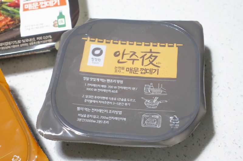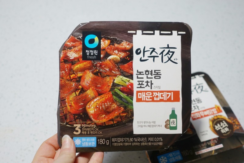 맥주 먹고싶을때 매콤한 안주 땡길때 먹기 좋은 청정원 안주야입니다! 청정원 안주야로 이번에 튀김도 나오고 진짜 엄청 다양한 안주들이 나오고 있더라구요. 저번에 네이버에서 할인할때 막창, 곱창, 껍데기, 무뼈닭발 이렇게 세트로 샀는데 이번엔 껍데기랑 무뼈닭발 먹어봤어요. 안주야 냉동실에 보관해두고 안주 땡길때 바로 전자레인지에 돌려서 먹을 수 있어서 넘 편하고 좋아요!