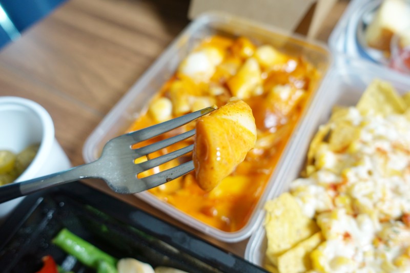 매콤 로제 당면 떡볶이 떡은 구멍이 쏙쏙 있어서 그 안에 맛있는 로제 소스가 가득 들어있어요. 로제보다 살짝 매콤함이 더해져서 더 맛있었던 메뉴!