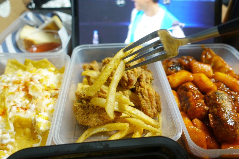 양이 많아서 먹고 남은 음식들은 냉장고에 넣어두고 저녁에 전자레인지에 돌려서 다시 먹기도 했어요!