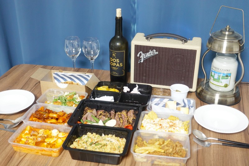 홈파티로 즐기는 홈뷔페! 와인과 함께 하면 더욱 기분 좋은 식사가 완성됩니다. 용기 자체도 깔끔하고 이쁘게 담겨있어서 따로 접시에 옮길 필요없이 그대로 먹어도 좋더라구요!