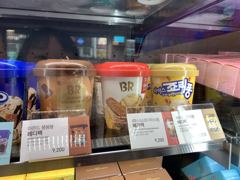 사실 아몬드 봉봉 먹으러 갔는데 이달의맛과 아몬드봉봉도 잘 어울릴 것 같아서 같이 먹어보기로 했어요. 이달의맛 선택시 500원 추가하면 싱글레귤러를 더블주니어로 더블업가능하죠. 추워서 뭐 들고 다니면서 먹기에도 춥지만 여름엔 이거 하나 들고 먹으면 세상 맛있죠. 올해는 가능할진 모르겠지만...