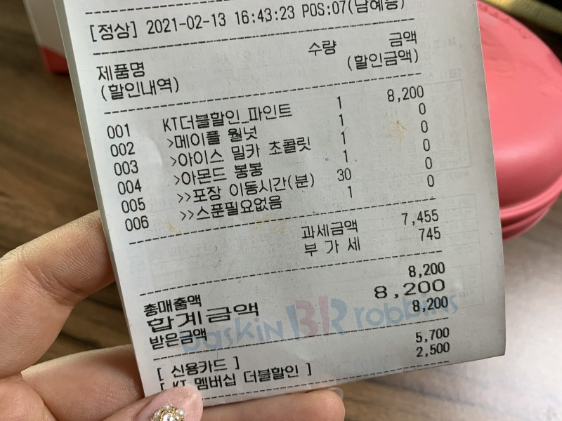 KT 멤버십 더블할인으로 파인트가 원래 8,200원인데 2,500원 할인 받아서 구입했어요. 매달 한번씩 가능하니 한달에 한번씩은 오게 되는 것 같아요!